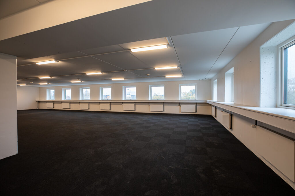 Førstesalen kan indrettes med moderne kontorer, mødelokaler og spiseområde, og der kan etableres nye bade- og omklædningsfaciliteter. På 2. salen på ca. 40 m² etableres et helt nyt fællesrum, møderum eller kantine – afhængig af lejers behov.