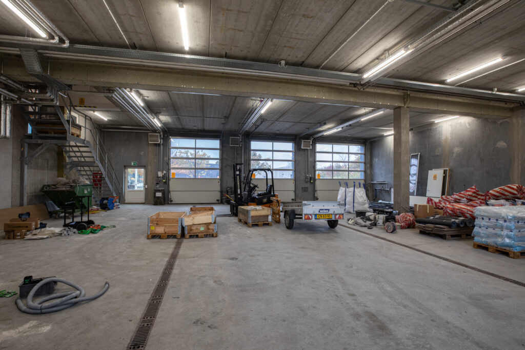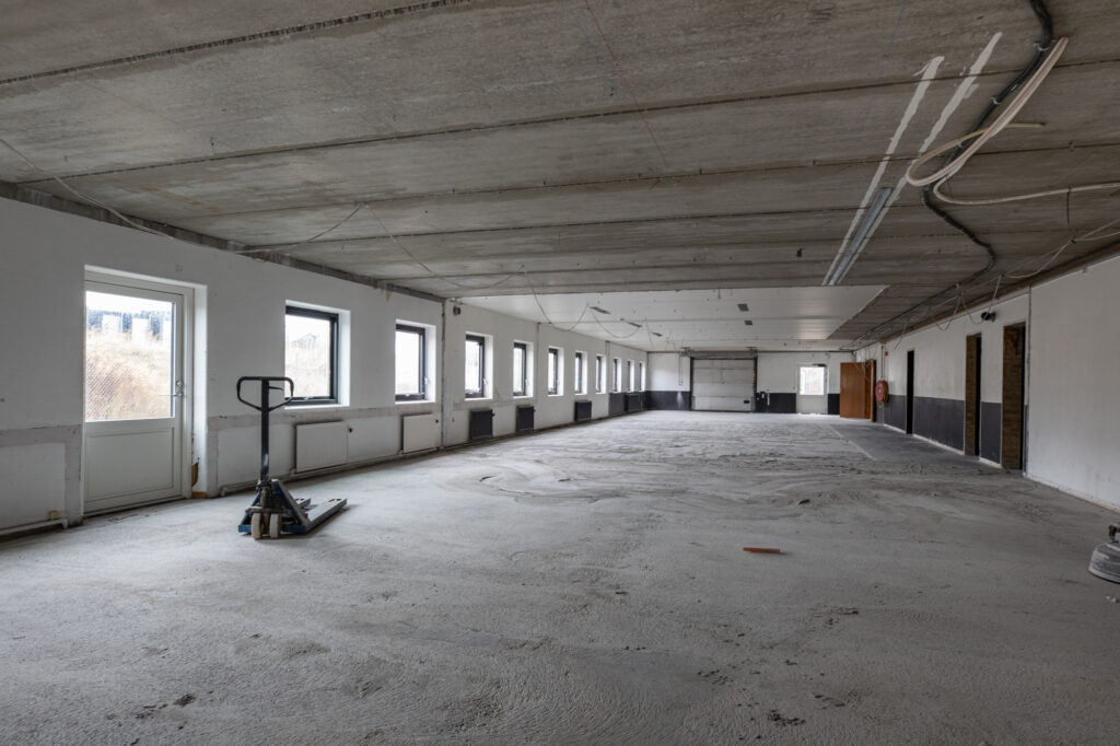 Stueetagen rummer store, lyse og fleksible arealer, som kan anvendes til kontor, showroom, produktion eller lager. Den store værkstedshal/lagerhal er udstyret med grav til håndtering under biler og lastbiler, samt olieudskiller, hvilket gør den særligt egnet til virksomheder med teknisk eller tung drift. Hallen har fire elektriske ledhejseporte, mens der er én port til et separat lager-/produktionsafsnit.